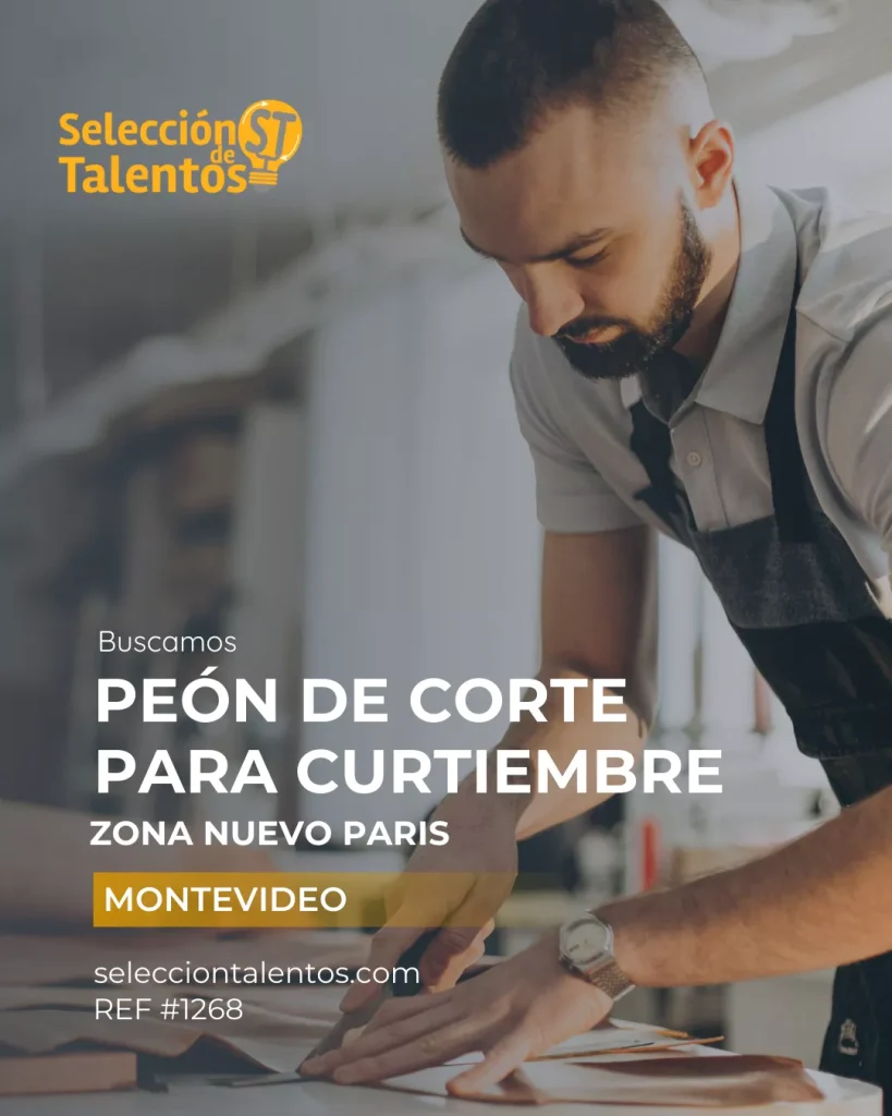 Seleccionamos PEÓN DE CORTE para importante curtiembre, ubicada en zona Nuevo Paris.